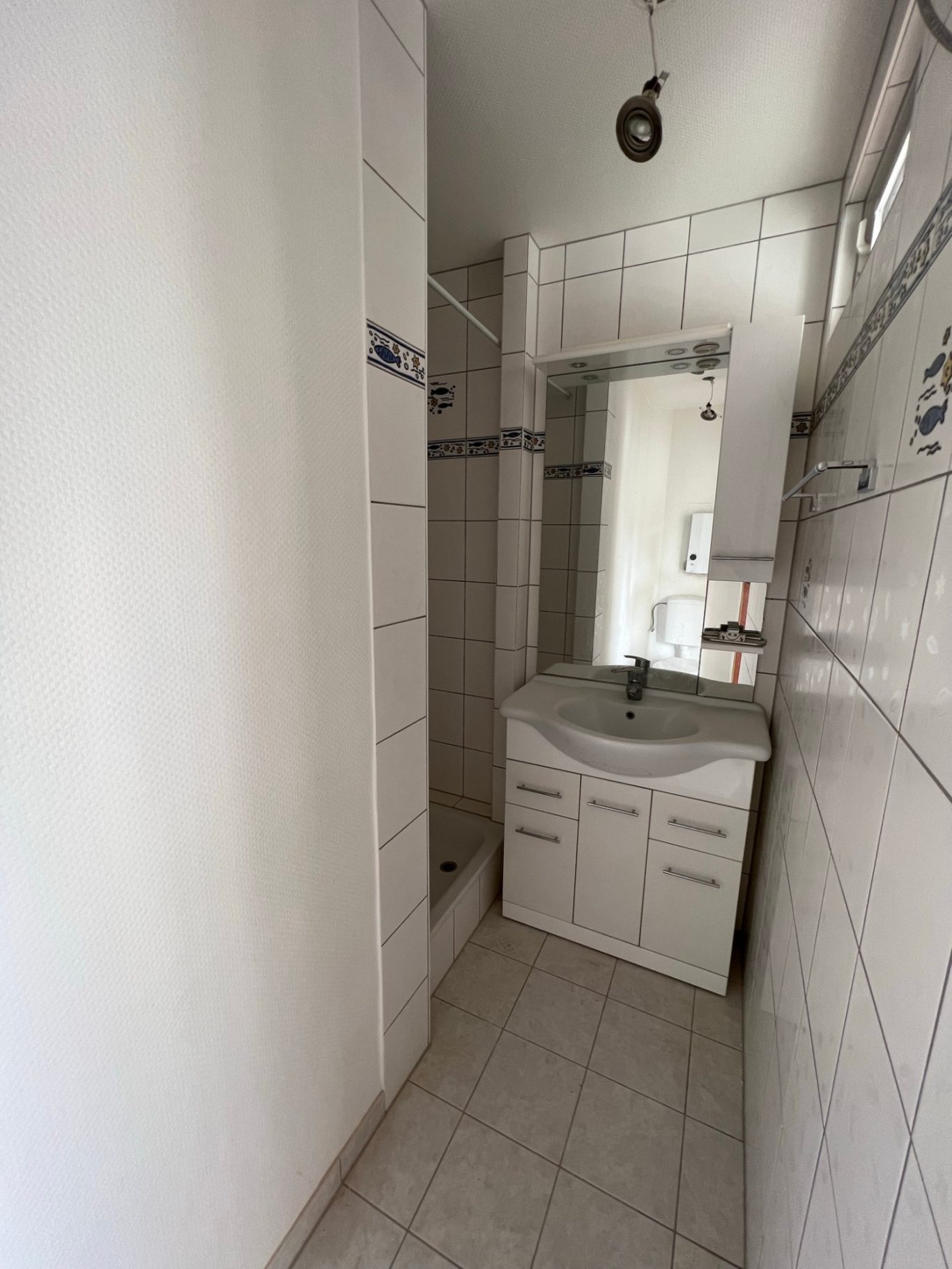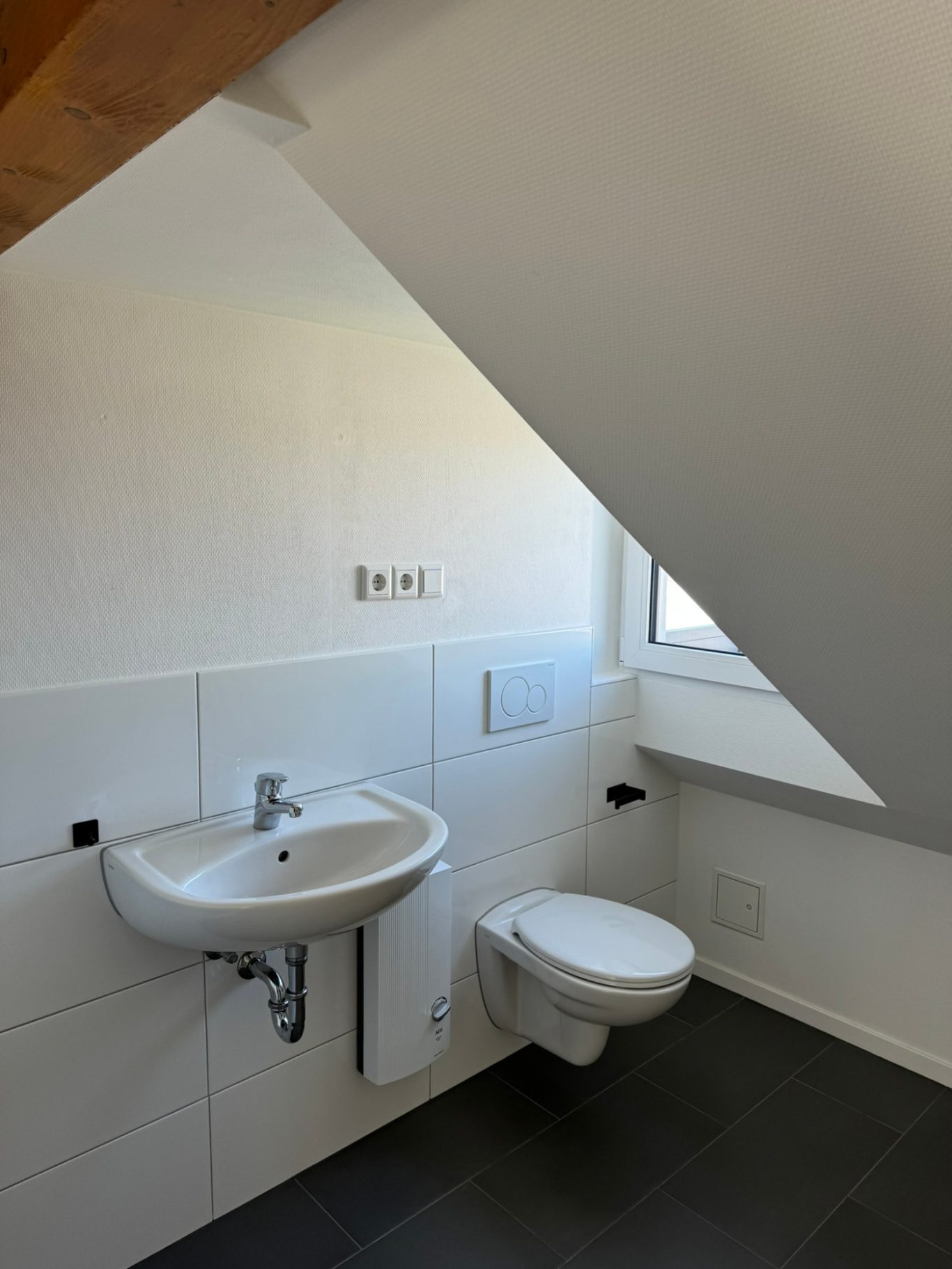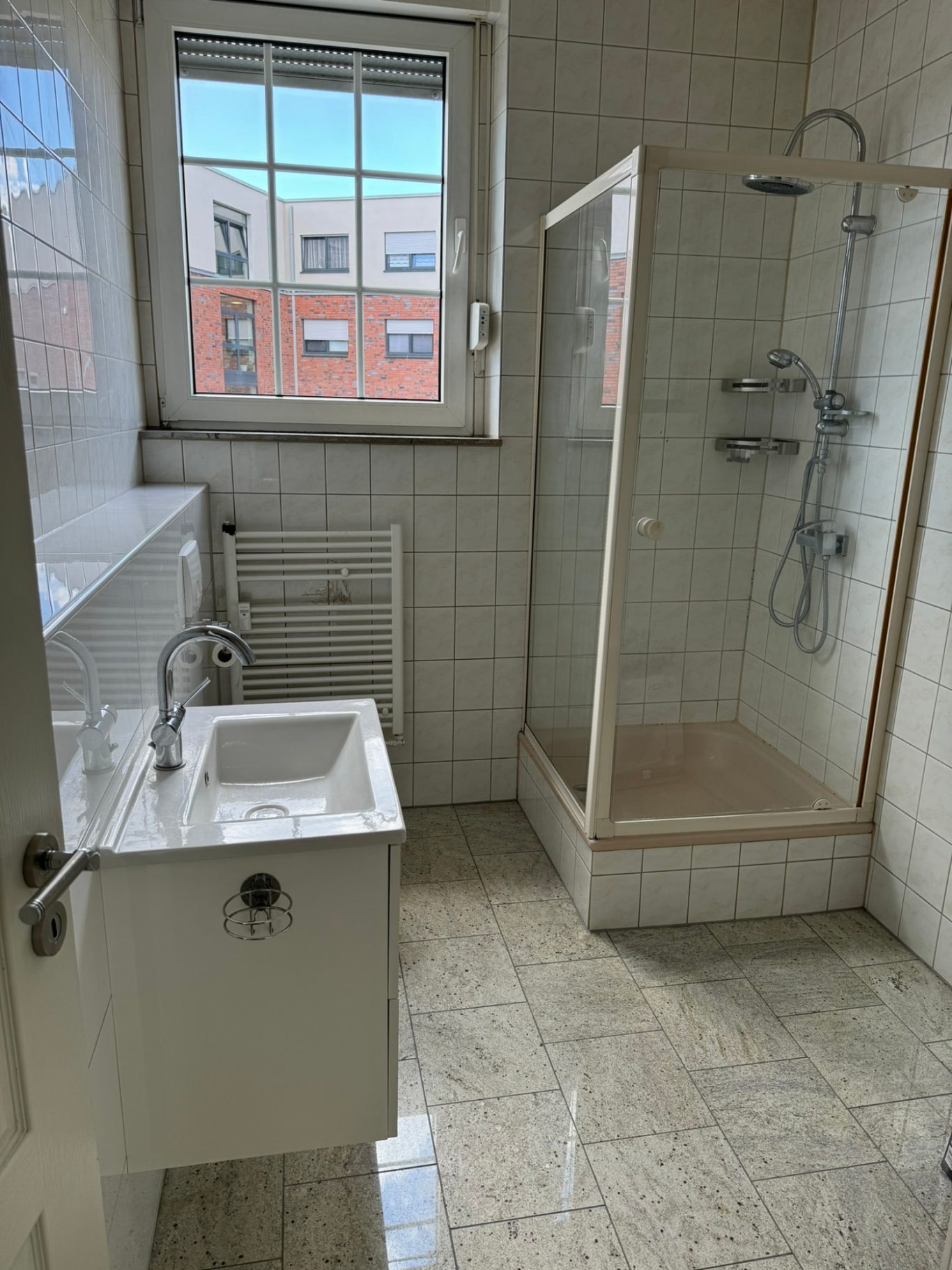Tageslichtbadezimmer mit Dusche mit Waschmaschinenanschluss