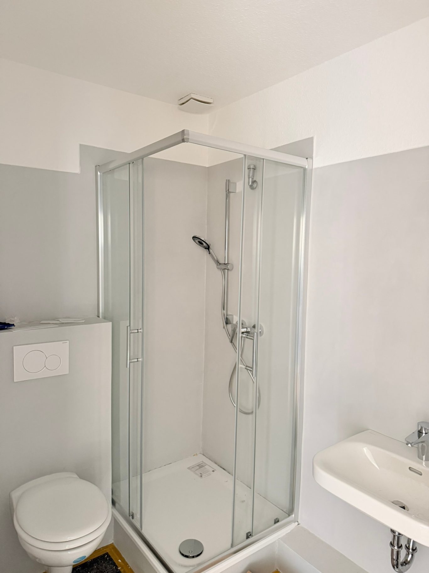 Tageslichtbadezimmer mit Dusche mit Waschmaschinenanschluss