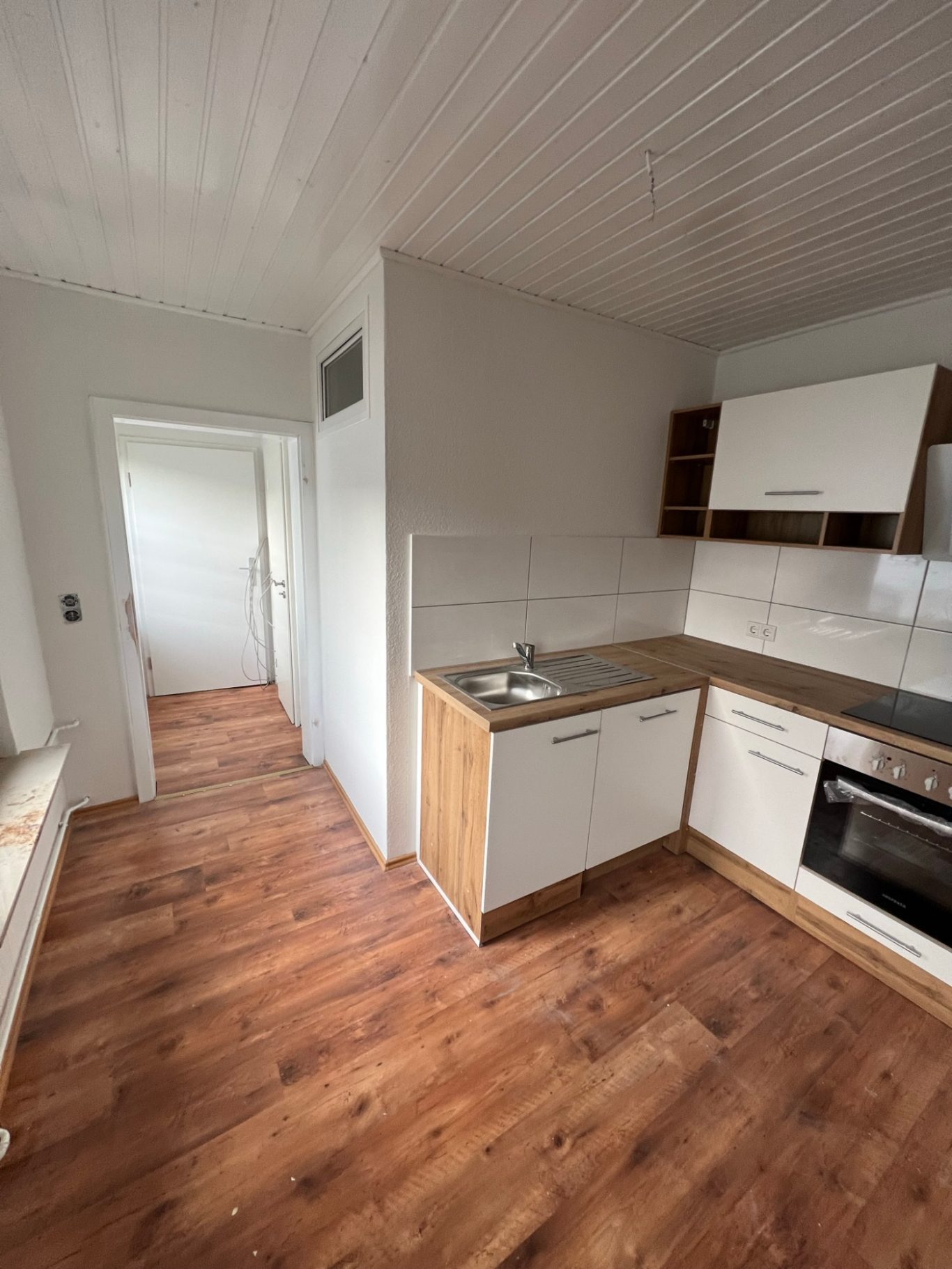 Zimmer mit Küchen niesche und EBK (Spühlmaschine, Kühlschrank, Ofen mit Herd)