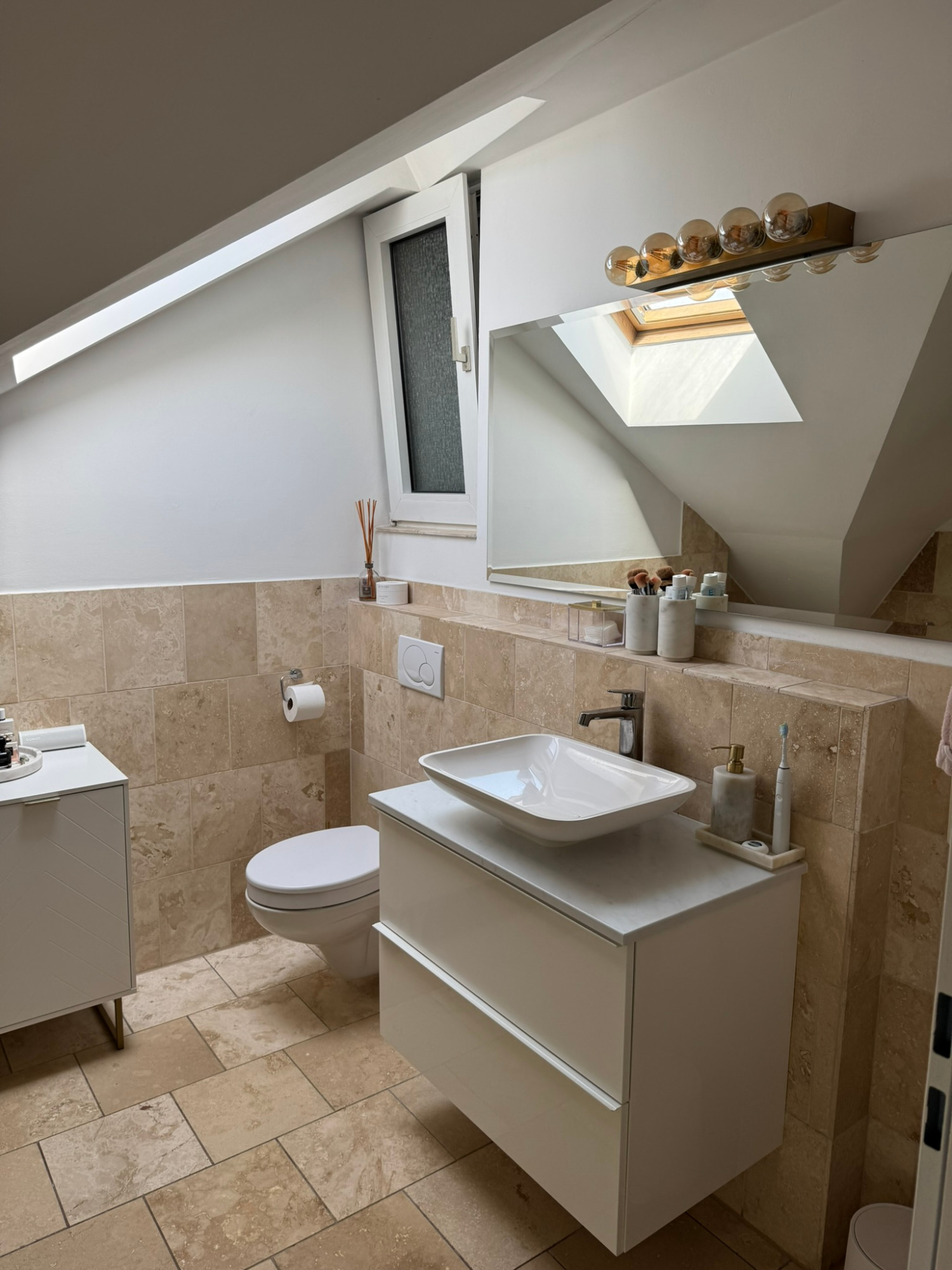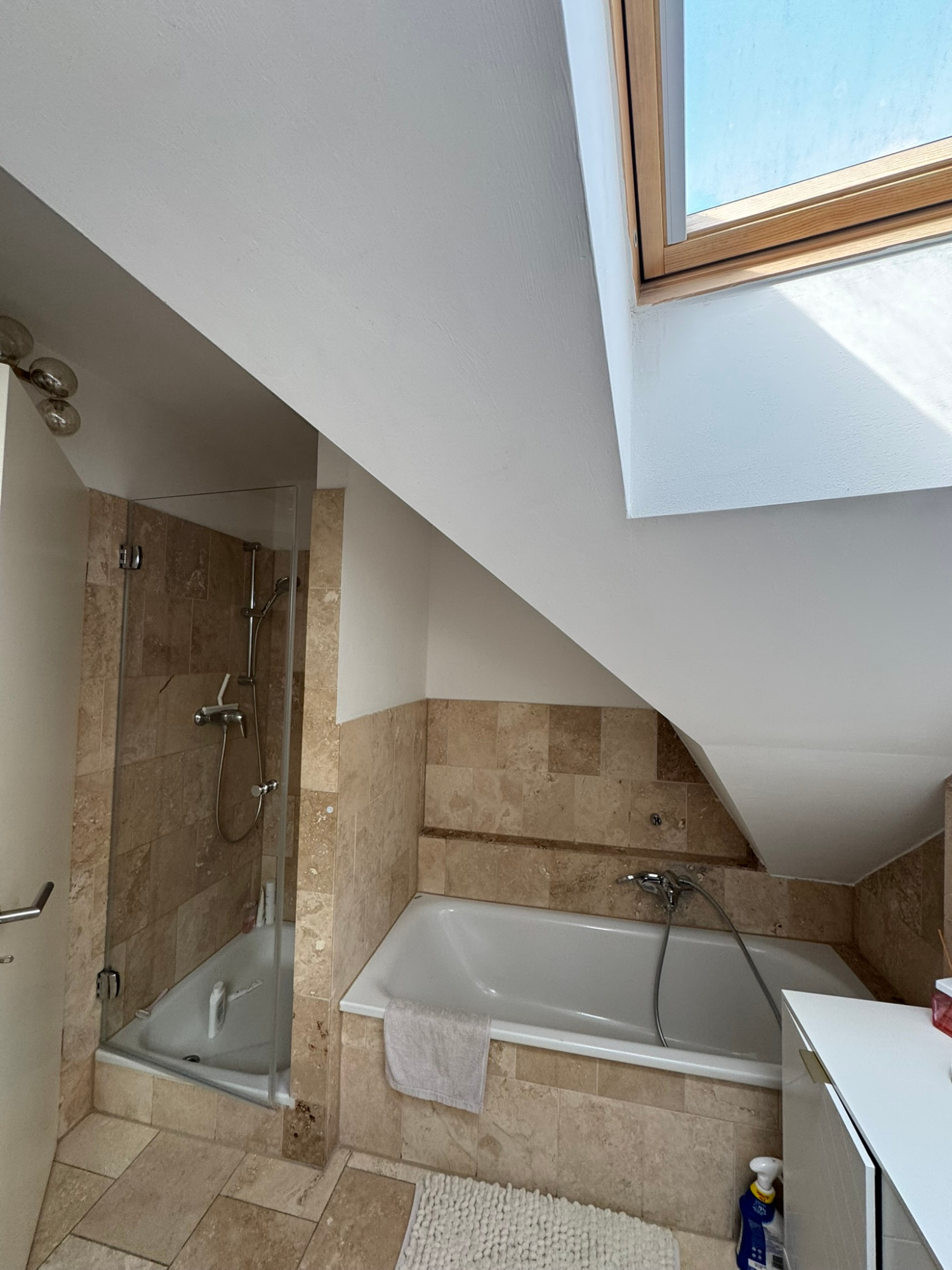 Tageslichtbadezimmer mit Dusche und Badewanne